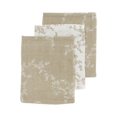 Meyco Σετ 3 Απορροφητικές Λαβέτες/Μουσελίνες Branches Sand – 30x30cm