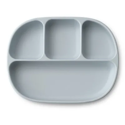 Interbaby Αντιολισθητικό Πιάτο Σιλικόνης Με Θήκες Και Καπάκι Blue Grey