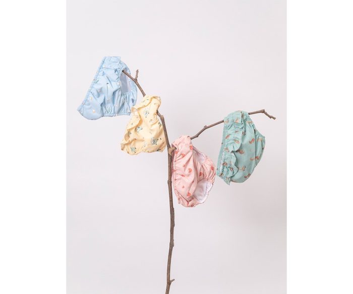 Εκπαιδευτικό μαγιώ πάνας Monnëka που έχει δημιουργηθεί με ειδικό ύφασμα που προστατεύει το δέρμα από τις ακτίνες του ήλιου και επίσης αποτρέπει τις διαρροές όταν το μικρό κάνει μπάνιο στην παραλία ή στην πισίνα.