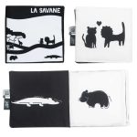 Αυτό το ασπρόμαυρο, διπλής όψης βιβλίο πρώιμης μάθησης είναι ειδικά σχεδιασμένο για να αφυπνίζει τις αισθήσεις των νηπίων. Χάρη στο τετράγωνο σχήμα 15×15 cm, ταιριάζει τέλεια στα χέρια του μωρού και είναι εύκολο στη μεταφορά. Με ασπρόμαυρες εικονογραφήσεις του με έντονες αντιθέσεις, αυτό το βιβλίο είναι ιδανικό για την τόνωση της όρασης των μωρών. Κάθε σελίδα προσκαλεί το μωρό να εξερευνήσει τη σαβάνα και να γνωρίσει αξιαγάπητους χαρακτήρες όπως την Ιππολύτα τον ιπποπόταμο, τον Φιλ τον κροκόδειλο και τον Λίνο το λιοντάρι. Αυτά τα διασκεδαστικά ζώα είναι βέβαιο ότι θα κινήσουν την περιέργεια και θα διασκεδάσουν τα μικρά παιδιά ταυτόχρονα. Το βιβλίο ενθαρρύνει επίσης την απτική ανάπτυξη, με μαλακές επιφάνειες με ευχάριστη υφή.