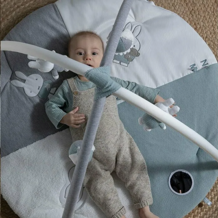 Εκπαιδευτικό γυμναστήριο της εταιρείας Miffy με διαφορετικές υφές που διεγείρουν τις αισθήσεις του μωρού. Διαθέτει κρεμαστά μαλακά παιχνίδια που βοηθούν στον συντονισμό χεριού-ματιού ενώ ταυτόχρονα αναπτύσσει την κινητική και νοητική του ανάπτυξη. Κατάλληλο από την γέννηση.