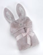 Κουβέρτα διπλής όψης ντουμπλαρισμένη με κουκούλα σε μορφή κουνελιού της ισπανικής εταιρείας Mora. Συσκευασία σε κουτί. Διαστάσεις: 75Χ95cm.