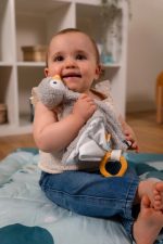 Οι μικρές του λεπτομέρειες, όπως οι κορδέλες και το μασητικό δαχτυλίδι, ενθαρρύνουν την περιέργεια και βοηθούν στην ανάπτυξη των λεπτών κινητικών δεξιοτήτων.