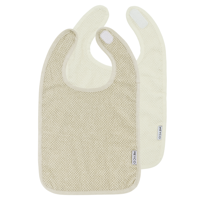 Οι Meyco Σετ 2 Βαμβακερές Σαλιάρες Popcorn natural/soft sand με velcro είναι κατασκευασμένες από 100% βαμβάκι, είναι απαλές, απορροφούν καλά την υγρασία και στεγνώνουν γρήγορα.