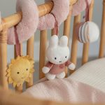 Το σπιράλ περιλαμβάνει κουδουνίστρα, ήχο “squeak” και καθρέφτη, προσφέροντας ποικιλία ερεθισμάτων που ενισχύουν την αισθητηριακή ανάπτυξη και τον συντονισμό χεριού–ματιού. Τα μαλακά υφάσματα και οι παιχνιδιάρικες φιγούρες της Miffy και του ήλιου κρατούν το μωρό απασχολημένο και χαρούμενο σε κάθε μετακίνηση.