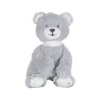 Πιέστε το μικρό κουμπί στο πίσω μέρος αυτού του όμορφου λούτρινου αρκουδιού, ώστε να ξεκινήσει μια απαλή μελωδία, που θα ηρεμήσει το μωρό σας, χαρίζοντας του έναν ήρεμο και χαλαρό ύπνο. Το απαλό άγγιγμά του και η μακριά γκρι γούνα του είναι σίγουρο ότι θα είναι ευχάριστα προς το δέρμα του μωρού σας. Το χαριτωμένο προσωπάκι του, ο μικρός λευκός φιόγκος γύρω από το λαιμό του και τα λευκά του ποδαράκια με μοτίβο γκρι αστεριών, θα σας κάνουν να το αγαπάτε κάθε στιγμή. Με μήκος 24 εκατοστών, το λούτρινο αυτό είναι αρκετά μικρό για να το πιάνει εύκολα το μωρό σας με τα χεράκια του, αλλά και το ιδανικό μέγεθος για ατέλειωτες αγκαλιές!