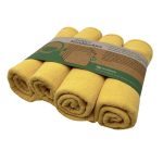 Ένα σετ από τέσσερα μαλακά πανάκια περιποίησης, κατασκευασμένα από 100% βιολογικό βαμβάκι.