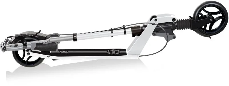 Σχεδιασμένο σε βολικό μέγεθος με T-bar από αλουμίνιο ρυθμιζόμενο σε 3 ύψη για παιδιά ηλικίας 14 ετών και άνω. Ο σφιγκτήρας στον λαιμό του πατινιού είναι αντικραδασμικός και τα χερούλια αναδιπλώνουν. Βολικά και εργονομικά δίχρωμα χερούλια από υλικό TPR. Έντονα ανακλαστικό αυτοκόλλητο για τα φώτα άλλων οχημάτων. Deck από μεγάλης αντοχής αλουμίνιο με αντιολισθητική ταινία και stand παρκαρίσματος. Διπλός σφιγκτήρας T-bar για μεγαλύτερη αντοχή και σταθερότητα. Πατενταρισμένο σύστημα αναδίπλωσης με το πόδι. Διπλώνει σε λειτουργία trolley. Μακρύ πίσω φρένο αλουμινίου (σε μήκος και σε πλάτος) για ακόμα μεγάλη ακρίβεια φραναρίσματος και ελαχιστοποίηση φθοράς. Διαθέτει φρένο χειρός με ντίζα (πλάτους 33mm) για απόλυτο έλεγχο και φρενάρισμα.