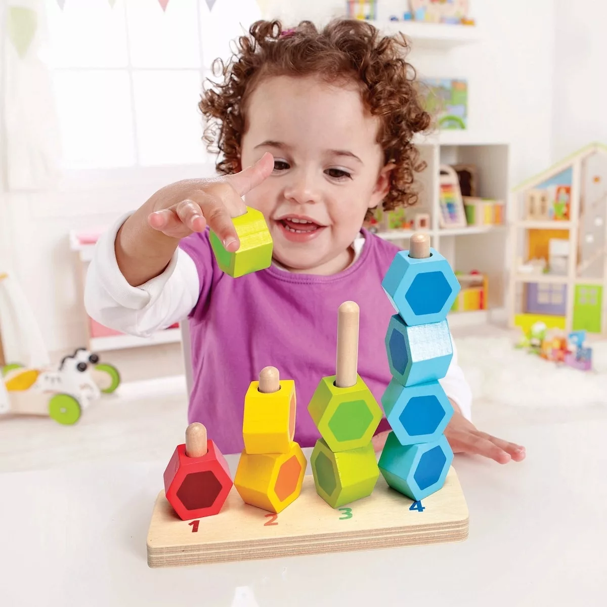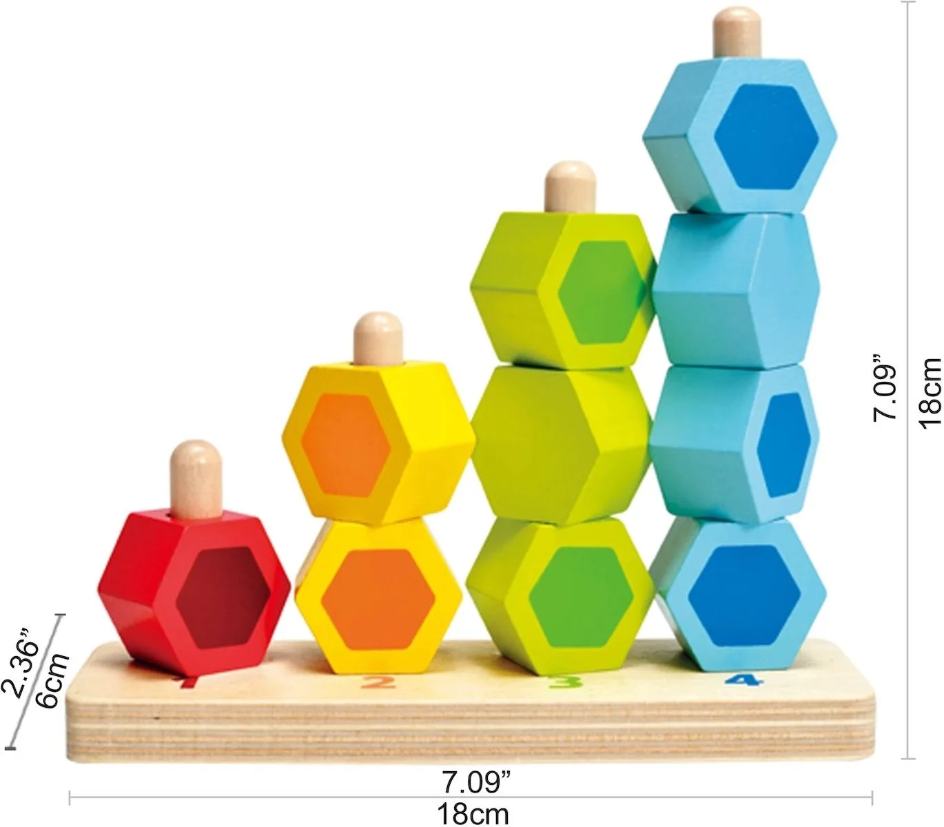 Με το Ξύλινο Counting Stacker δημιουργήστε διασκεδαστικούς πύργους και μάθετε το παιδί σας να μετράει μέχρι το δέκα. Ιδανικό για τη βελτίωση των λεπτών κινητικών δεξιοτήτων.