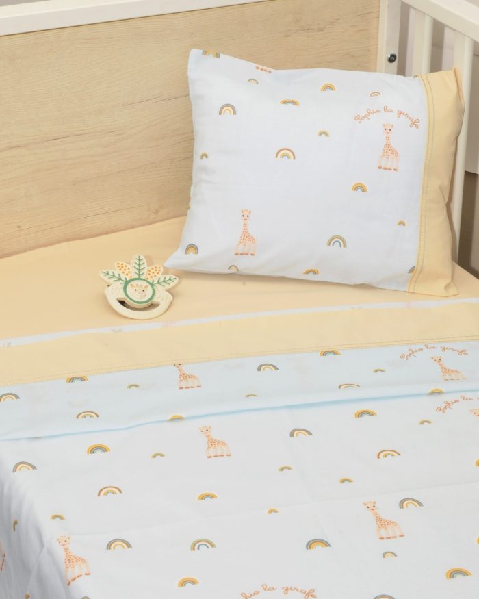 Σεντόνια κούνιας 3 τεμ 110×170 100% βαμβάκι κατωσέντονο με λάστιχο Design 504 Sophie La Girafe