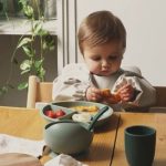 Αυτό το σετ φαγητού αποτελείται από ένα πιάτο με διαχωριστικά, ένα μπολ με βεντούζα, ένα κουτάλι και ένα ποτήρι σιλικόνης. Είναι η ιδανική επιλογή για ένα γεύμα ασφαλές από λεκέδες και διαρροές, αλλά και μια ευκαιρία για όλα τα μικρά παιδιά στο να μάθουν να τρώνε μόνα τους.