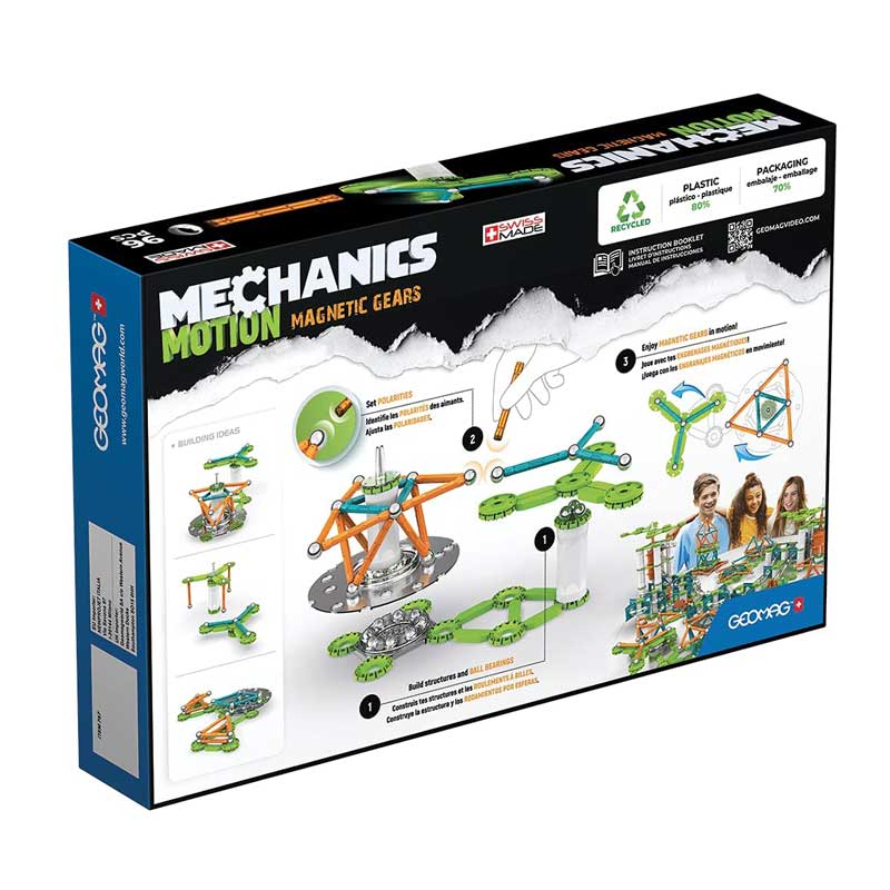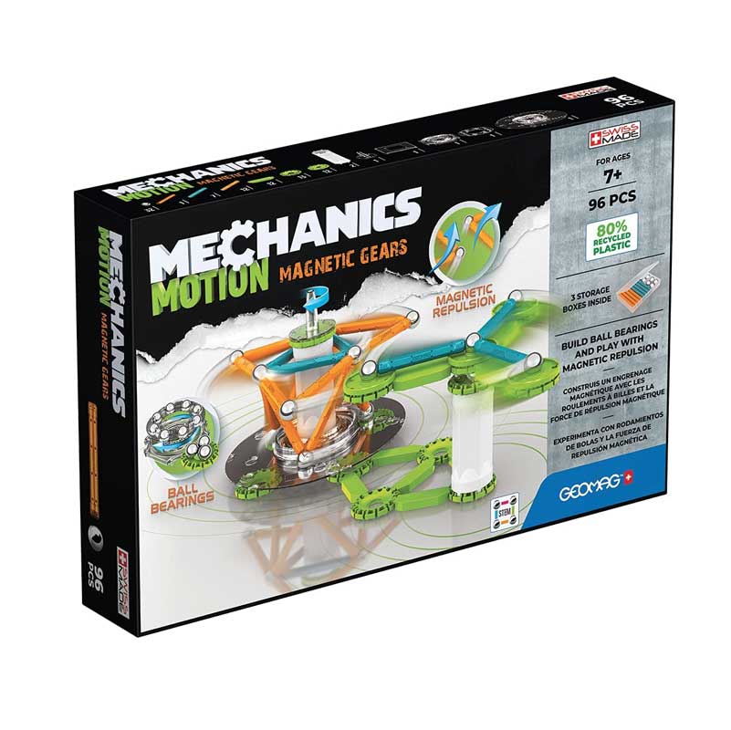 Μέσα από το εντυπωσιακό σετ Mechanics motion Motion της Geomag, το παιδί έχει την δυνατότητα να δημιυργήσει ένα σύστημα μετάδοσης κίνησης χωρίς επαφή χρησιμοποιώντας τις δυνάμεις των μαγνητών.