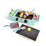 Αυτό το ξύλινο φορητό σετ μπάρμπεκιου έχει όλα όσα χρειάζονται οι μικροί για να παίξουν τον ρόλο του ψήστη. Το σετ περιλαμβάνει μαγειρικά σκεύη, κέτσαπ, μουστάρδα, χοτ ντογκ, μπριζόλα, λαχανικά και πολλά άλλα. Τα παιδιά μπορούν ακόμη και να γυρίσουν τους τροχούς για να δουν τα κάρβουνα να ανάβουν και να ακούσουν ήχους τσιγαρίσματος από τη σχάρα.